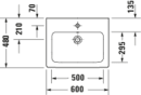 Med vaskens anvendelige stÞrrelse, overlÞb og et centreret hanehul fÄr du en velafbalanceret lÞsning, som egner sig perfekt til montering pÄ sÞjle eller D-Code badevÊrelsesskabe fra Duravit.