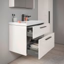 Underskabet måler 78,4 cm i bredden og 46 cm i dybden, så du får god plads til opbevaring af alt fra håndklæder til hverdagens små nødvendigheder. De to rummelige skuffer har soft close, så de lukker blidt og lydløst – også når hverdagen går stærkt. Med fem års garanti får du tryghed og kvalitet, der holder i mange år.