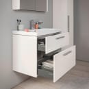 Underskabet måler 78,4 cm i bredden og 46 cm i dybden, så du får god plads til opbevaring af alt fra håndklæder til hverdagens små nødvendigheder. De to rummelige skuffer har soft close, så de lukker blidt og lydløst – også når hverdagen går stærkt. Med fem års garanti får du tryghed og kvalitet, der holder i mange år.