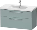 Med dette underskab fra Duravit D-Code serien fĂ¥r du en smuk og rummelig løsning, der samler hverdagens smĂ¥ og store øjeblikke pĂ¥ badeværelset. Den matte, grønne overflade tilføjer varme og et roligt udtryk til rummet, mens de elegante kromgreb understreger det moderne design.