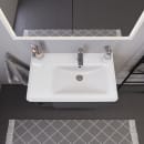 D-Neo håndvasken er fremstillet i et slidstærk og rengøringsvenligt porcelæn med livsvarig garanti. Den højrevendte håndvask er en tidsløs klassiker med sine lige linjer og bløde afrundinger, og bidrager til en fuldendt oplevelse, når den kombineres med de smukke vægmonterede vaskeskabe fra Duravit D-Neo serien.