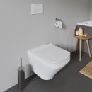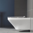 Det hvide væghængte toilet fra Duravit er i et flydende design uden synlige monteringshuller eller besværlige kanter, hvori der kan sætte sig støv og snavs. Det flade og elegante design giver et toilet der går i ét med dets omgivelser. Toilettet monteres nemt via hullerne til toiletsædet.