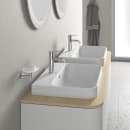 Denne hÄndvask er med overlÞb og platform til hanehul. Med vasken fÄr du desuden er keramisk push-open bundventil for et flot look og nem betjening.