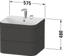 Happy D.2 Plus-serien bygger videre på designklassikeren Happy D.2 med sine karakteristiske buede former, afrundede hjørner og slanke linjer. Denne møbelpakke, der inkluderer både håndvask og underskab, skiller sig ud med nye, smukke former og farvevarianter samt præcise linjer og tynde kanter, der tilsammen skaber et stilfuldt og harmonisk udtryk.