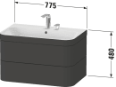 Happy D.2 Plus-serien bygger videre på designklassikeren Happy D.2 med sine karakteristiske buede former, afrundede hjørner og slanke linjer. Denne møbelpakke, der inkluderer både håndvask og underskab, skiller sig ud med nye, smukke former og farvevarianter samt præcise linjer og tynde kanter, der tilsammen skaber et stilfuldt og harmonisk udtryk.