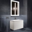 Det minimalistiske underskab L-Cube er udstyret med to skuffer, hvor der er udskæring til vandlåsen i den øverste. Begge skuffer er grebsfrie og med push open funktion, så du nemt får adgang til skuffernes indhold.