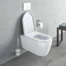 Det hvide væghængte toilet fra Duravit er i et flydende design uden synlige monteringshuller eller besværlige kanter, hvori der kan sætte sig støv og snavs. Toilettet monteres nemt via hullerne til toiletsædet.
