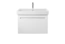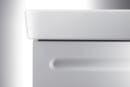 Vaskeskabet er fremstillet i mat hvid, og har en høj skuffe med et smart integreret greb, som er blødt afrundet i siderne, hvilket komplimenterer skabets lige linjer.