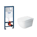 Komplet toiletpakke med væghængt toilet, toiletsæde, trykknapper og indbygningscisterne. Pakken indeholder de nødvendige dele der skal anvendes ved montering af væghængt toilet.