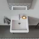 Håndvasken er lavet i tysk kvalitet, der med sikkerhed vil holde i mange år frem. Vasken skal monteres på væggen og har overløbshul i toppen. Det betyder at du skal købe en bundventil med overløb.