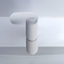 Denne inspiration bringer også en blød dynamik til designet af Wave-badeværelsesarmaturerne. Grebet har en let opadgående hældning, hvilket sikrer en præcis og ergonomisk betjening.