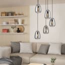 Oplev en atmosfære af stilfuld belysning med Alobrase-klyngependlen fra Eglo. Med fem organisk formede glasskærme i sort transparent (fumé) og en spiralformet ophængning, skaber denne lampe et unikt lysdesign i dit hjem.