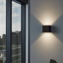 Calpino-væglampen fra Eglo er formet som en perfekt kvadrat i støbt, sort aluminium. Lampen har den smarte funktion, at du kan justere lysvinklen på lyset ved blot at justere på de indvendige, bevægelige paneler i lampen.