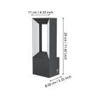 Designet er skarpt og gennemført, og lampens høje, åbne form i sort støbt aluminium giver et grafisk udtryk. De hvide lysflader skjuler den integrerede LED og skaber et blødt, indirekte lys, som både er rart for øjet og giver tryghed i mørket. Lyset strømmer både udad og bagud, hvilket tilføjer dybde og liv til muren bag. Det gør lampen til et oplagt valg ved entréer og terrassedøre, hvor både æstetik og funktion spiller en rolle.