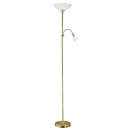 Den klassise gulvlampe UP 2 fra Eglo er fremstillet i stål med en bruneret messing farvet overflade, og har to hvide skærme. Den lille læsearm er justerbar og giver dig mulighed for at indstille dit læselys, så det imødekommer dit behov.