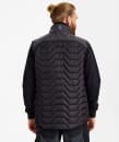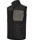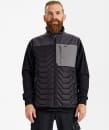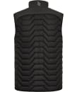 Vesten er udført i polyester (genanvendt) og er afsluttet med elastikkant i ærmegab samt elastik i bunden, så den sidder stabilt under brug. Til opbevaring er der sidelommer med lynlås og en brystlomme med lynlås, så småting kan placeres sikkert og tæt på kroppen. Refleksdetaljer for øget synlighed er integreret som en diskret del af designet, når vesten anvendes i omgivelser, hvor synlighed har betydning.