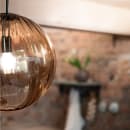 Fengari pendel fra Markslöjd. pendel i ravfarvet glas og detaljer i antigue messing. Diameter 53,5 cm. 1,5m sort tekstilkabel. krog. 1xE14, Max 40W. Lyskilde medfølger ikke.