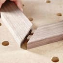Den specielle form kombineret med kvældende limlommer og langsgående riller giver brikkerne sikker stabilitet. For absolut vridningssikre samlinger og maksimal stabilitet. Og det med en betydeligt hurtigere bearbejdning: Det første hul placeres let og fræses præcist ved hjælp af stopklapper. Arbejdsemnerne samles med det samme præcist, så de flugter med hinanden i kanten. DOMINO systemet tolererer også mindre unøjagtigheder ved de resterende huller.