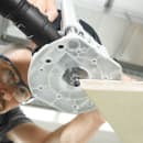 Hurtig indstillelig sideanslag med central fastspænding med finindstilling og føringsbakker, der kan forskydes uden brug af værktøj. Med hurtigbremse og genstartsbeskyttelse. Integreret spånudsugning til slangediameter D 27 og D 36 indbygget i fræsebordet.