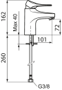Det klassiske 9000XE håndvaskarmatur i børstet krom har f.eks. en koldstarts-funktion, der er designet til at spare på vand og energi. Når vandhanen åbnes i midterpositionen, aktiveres det varme vand ikke med det samme. Du skal aktivt dreje grebet mod venstre for at starte opvarmningen. Denne model er udstyret med forkortede tilslutningsslanger på 260 mm.