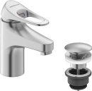Det klassiske 9000XE håndvaskarmatur i børstet krom har en smart koldstarts-funktion, der er designet til at spare på vand og energi. Når vandhanen åbnes i midterpositionen, aktiveres det varme vand ikke med det samme. Du skal aktivt dreje grebet mod venstre for at starte opvarmningen.