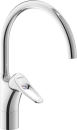 Den høje C-tud på køkkenarmaturet kan svinges mellem 60°, 85°, 110° og 360°, som gør dit daglige køkkenarbejde dejligt fleksibelt. På den måde er det nemmere at fylde vand i gryder eller høje vandkarafler, ligesom rengøringen af vasken også lettes, når tuden kan svinges fra side til side.