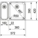 Franke vaskes designoverløb er defineret ved et diskret design, der støtter vaskens strømlinede udtryk. Overløbet er gemt bag en metalplade og giver et stilrent indtryk.