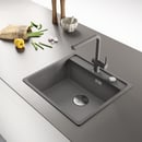 Vasken leveres med et pænt rustfrit stål afløbsdæksel. For et mere personligt look kan der tilkøbes afløbssæt i forskellige farver, så det matcher køkkenarmaturet.