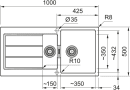 Den store kumme måler 350x432x200 mm, og den lille 150x350x130 mm – perfekt når du har brug for at skylle op, vaske grønt eller bare have et sted at stille det beskidte. Afløbspladen til venstre giver dig ekstra afsætningsplads og gør det nemt at tørre af direkte ned i vasken.