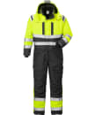 Denne Airtech® vinterkedeldragt fra Fristads er designet til ultimativ beskyttelse mod vejret. Dragten er udstyret med en aftagelig og justerbar, foret hætte, stormflap med velcro samt en gennemgående lynlås. Ærmerne har indvendige ribstrikkede vindfang og tommelfingerhul, mens taljen kan justeres med et snøre for optimal pasform. Yderligere detaljer inkluderer høj krave, ergonomisk formede bukseben, der giver stor bevægelsesfrihed samt en række funktionelle lommer, herunder brystlommer med lynlås, inderlomme, og lommer til tommestok og knæpuder.