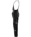 Til værktøj og småting er der aftagelige hængelommer, smæklomme, mobillomme, åbne forlommer, to baglommer samt tommestoklomme og penlomme. Knæpudelommerne gør det muligt at bruge knæpuder, og højden kan reguleres, så knæområdet kan tilpasses arbejdsstilling. Ventilationskanaler med lynlås kan åbnes efter behov, og refleksdetaljer øger synligheden. Materialet består af polytrimethylene terephthalate, polyester og genanvendt polyester, og selerne er både justerbare og elastiske.