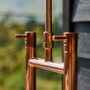 Få både varme og visuel varme med Frostline EQI fritstående udendørsbruser i kobber. Her møder teknisk kvalitet et karakterfuldt udtryk, som løfter din terrasse, spa eller have med både funktion og stil. Den er designet til helårsbrug og leverer et forfriskende koldt bad om sommeren og et varmt skyl på de kølige dage. Kobberoverfladen tilfører et levende præg, der kun bliver smukkere med tiden.