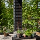 Bruseren er fremstillet i kobber og tåler årstidernes skiften uden at miste sit udtryk. Over tid vil kobberet patinere og give bruseren et endnu mere karakterfuldt udtryk, der passer perfekt ind i både natur og arkitektur.
