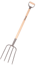 Med lakeret aksetræsskaft med kraftig jern-D-greb. Grebhoved: 310 x 230 mm, totallængde: 1220 mm, vægt: 1700 g.