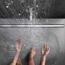Alle CleanLine afløbsrender er lavet af børstet rustfri stål og har integreret rengøringsvenlig hårsi. Den fleksible montering kommer af at længden på afløbsrenderne nemt kan tilpasses og afkortes med en nedstryder.