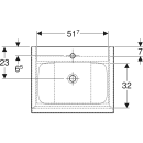 Håndvasken har et rummeligt og anvendeligt bassin med en fin afsætningsplads på bagkanten af vasken. Vasken har det innovative og skjulte Clou-overløb med løfteaktivering og ventil.