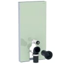 Geberit Monolith cisterne til gulvstående back-to-wall skåle – i mintfarvet glas med børstede aluminiums sider.