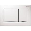 Betjeningspladen passer til Geberit Omega indbygningscisterner og har et firkantet design med blankforkromede striber, som giver et moderne præg på badeværelset. De to knapper gør det let at vælge mellem stort og lille skyl.