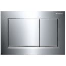 Betjeningspladen passer til Geberit Omega indbygningscisterner og har et firkantet design med blanke og matte kromdetaljer, som giver et moderne præg på badeværelset. De to knapper gør det let at vælge mellem stort og lille skyl.