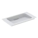 Denne håndvask skal kombineres med et Geberit Duofix indbygningselement, som gør installationen af vask og armatur enkel og stabil.
