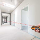 Handy Laser-afstandsmåler til indendørs brug. Oplyst display. Funktioner: afstandsmåling, arealmåling (m²), auto-sluk og rumfangsmåling (m³). Rækkevidde: 30 m. Nøjagtighed: ± 2 mm. Vand- og støvtæt, IP54. Leveres med etui og 2 stk. AA-batterier.