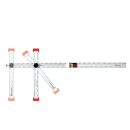 Alsidig gipsvinkel med både millimeter- og gradindelling. Med stærk skruehåndtag, meget synlig tovejs trykt skala (højre og venstre) og ridset markeringsgrader på T-hovedet, så man nemt kan indstille den ønskede hældning. Kan justeres til enhver vinkel, og foldes for nem opbevaring. Er udstyret med endehætter med afsats, så vinkelen holder sig selv og ikke vipper.
