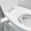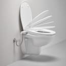 Med Grohe douche toiletsædet bliver det nemt med lidt ekstra komfort og hygiejne i hverdagen. Toiletsædet er udført i slim udgave, der giver et stilrent udtryk. Sædet har softclose for smidig lukning og er udstyret med 2 sprayarme, 1 bag til og 1 til feminint skyl og de kan justeres i sprayintensitet. For optimal hygiejne renser spraydyserne sig selv med frisk vand både før og efter brug. Håndtaget på siden betjenes manuelt og kræver ingen elektricitet.