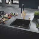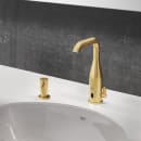 Cosmopolitan sæbedispenseren fra Grohe er fremstillet i en smuk, børstet messingfarve, som er belagt med en pvd behandling, der sørger for at kobberfarven bibeholdes.
