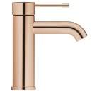 Den slanke krop og den elegant buede tud gør armaturet til et stilfuldt designelement på badeværelset. Armaturet leveres i Grohes poleret Warm sunset-finish, som minder om blank kobber.