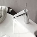Etgrebsarmaturet er med standard tud, pop-up bundventil og indbygget GROHE FeatherControl patron, der gør det muligt at regulere vandets temperatur og gennemstrømning trinløst og helt blødt – en funktion der varer ved, selv efter mange års brug.
