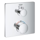 De kvadratiske Grohtherm termostater til indbygning er elegante, stilfulde og fuldstændig strømlinede. Brusebatteriets design gør det muligt for dig at justere vandmængden og let skifte mellem hånd- og hovedbruser. Drejes knappen mod venstre får du vand fra håndbruseren, drejes den mod højre kommer det fra hovedbruseren.