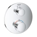 De runde Grohtherm termostater til indbygning er elegante, stilfulde og fuldstændig strømlinede. Brusebatteriets design gør det muligt for dig at justere vandmængden og let skifte mellem hånd- og hovedbruser. Drejes knappen mod venstre får du vand fra håndbruseren, drejes den mod højre kommer det fra hovedbruseren.