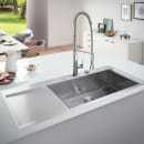 K1000 stålvasken fra tyske Grohe er kendetegnet ved smarte funktioner, friske moderne linjer og suveræn stålkvalitet.