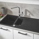 Køkkenhåndvaskene fra Grohe Kompositvaske, er fremstillet af et kvartskomposit materiale, som består af en blanding mellem granit og akryl. Dette skaber et slidstærkt materiale, med en elegant og flot glat overflade, der er let at rengøre.